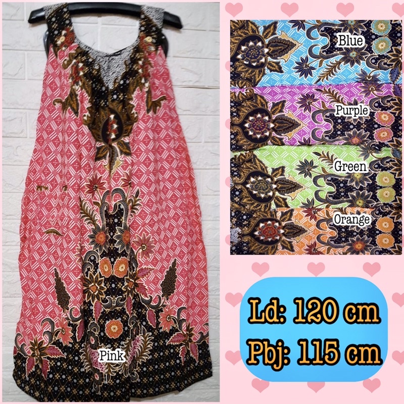 Daster batik Solo Bunga Sutra, model kutung tanpa lengan, motif yang cantik dan kekinian. Bahan tebal, motif menarik, nyaman digunakan sehari-hari.