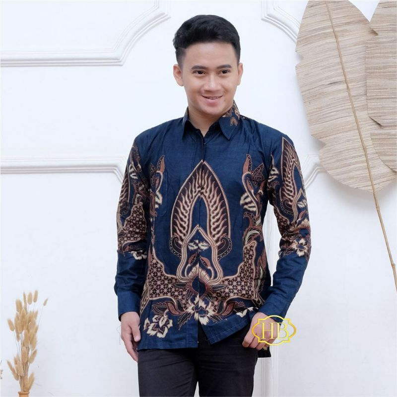 Jual Murah Pakaian di Kabupaten Tulang Bawang Batik Pria Lengan Panjang Gunungan Pialang Navi Batik Solo Mahal Murah Size M L Xl Xxl dari Nahla Batik Pekalongan Kota Pekalongan