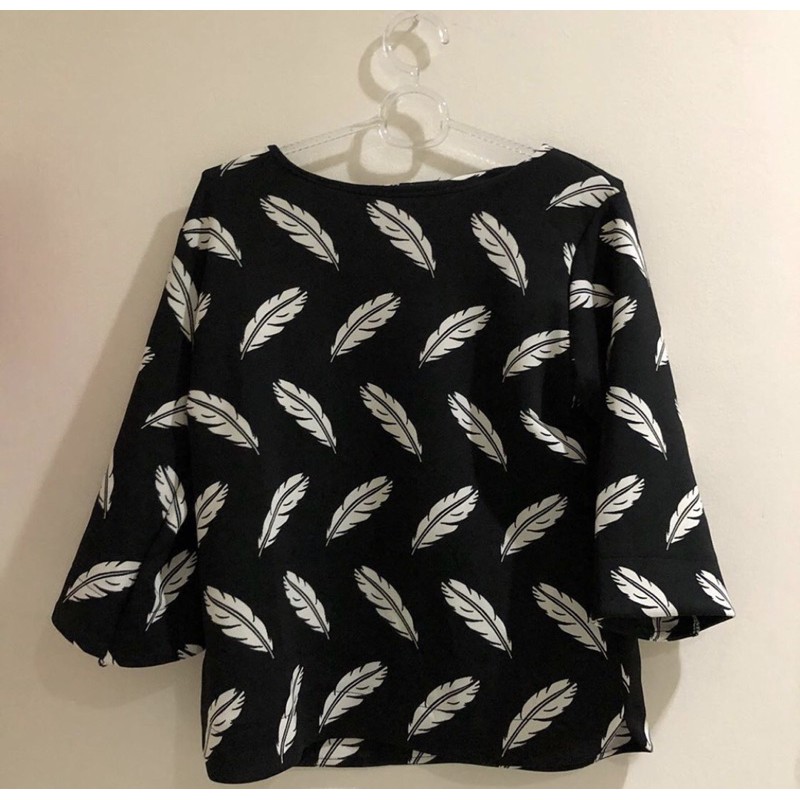 black blouse corak daun 🍃